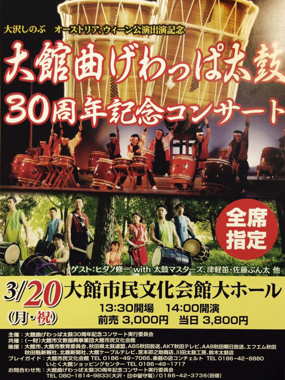 【大館曲げわっぱ太鼓30周年記念コンサート】